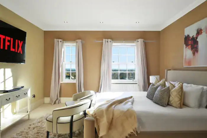 Discover luxury and ease at Chigwell Manor. This exquisite 8-bed mansion in Chigwell is perfect for family getaways, corporate retreats, and special celebrations. Enjoy expansive living areas, elegant bedrooms, and a host of premium features including a pool table, a dedicated cinema room, and a private lift. The spacious lounge is designed for hosting unforgettable gatherings. Book now for a stress-free, upscale stay at Chigwell Manor.